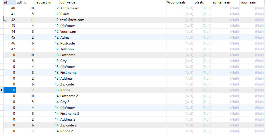 Alle velden die in een 'normale' database 1 record zijn, zijn nu elk een apart record. Dus 8 velden = 8 records zijn samen 1 NAW-gegeven.